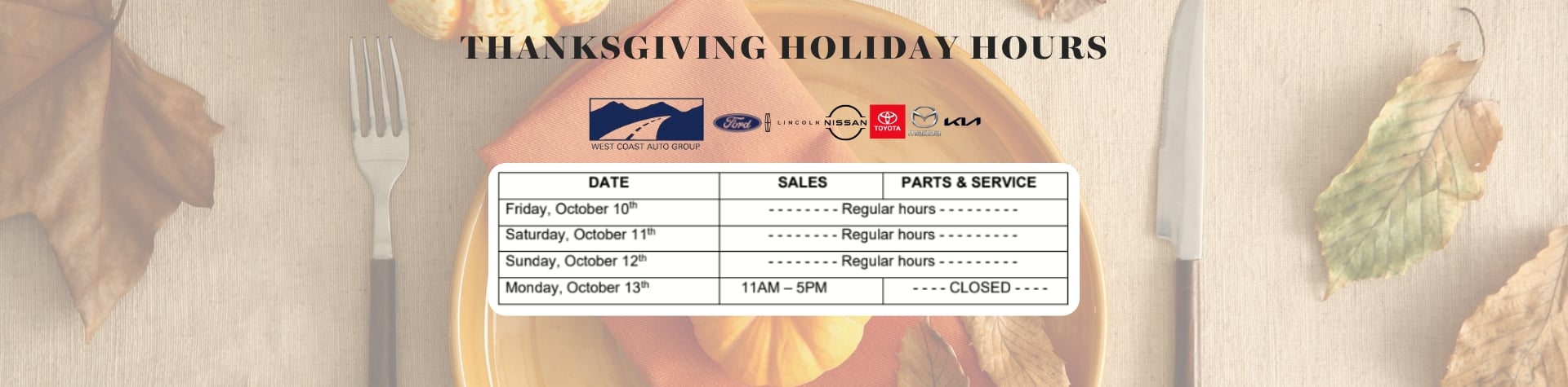 The West Coast Auto Group serving Pitt Meadows, Maple Ridge, Mission, Port Coquitlam, Coquitlam and now serving Langley and Surrey via the Golden Ears Bridge, consists of West Coast Ford Lincoln, West Coast Mazda, West Coast Toyota, West Coast Nissan, West Coast Kia and West Coast Detail & Accessory Centre. We welcome you to our website!